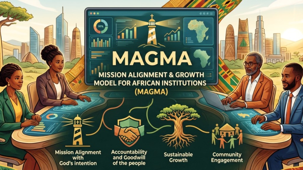 Mission Alignment & Growth Model for African Institutions (MAGMA) is an IT-integrated, self-guided model designed to support African institutions in strengthening their mission, improving accountability, and achieving sustainable growth—while remaining aligned with God’s intention, the goodwill of the people, and community engagement.